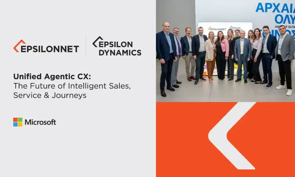 Με ιδιαίτερη επιτυχία πραγματοποιήθηκε την Τετάρτη 18 Μαρτίου, στο Ολυμπιακό Μουσείο Αθήνας, η κλειστή εκδήλωση της EPSILON DYNAMICS, επιχειρηματικής μονάδας του Ομίλου EPSILONNET, με τίτλο «Unified Agentic CX: The Future of Intelligent Sales, Service & Journeys».