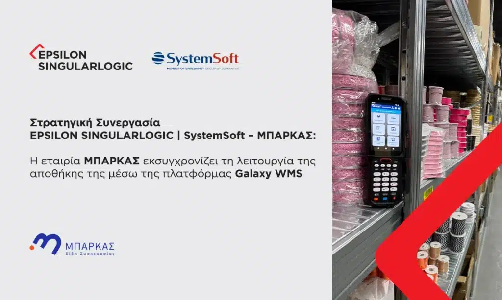 Η εταιρία ΜΠΑΡΚΑΣ, με μακρόχρονη και ηγετική παρουσία στην εμπορία και διάθεση ειδών συσκευασίας, DIY γάμου και βάπτισης, εποχιακών ειδών, διακόσμησης και ειδών εστίασης–party, ολοκλήρωσε με επιτυχία την υλοποίηση ενός σύγχρονου συστήματος Warehouse Management System (WMS) μέσω των εταιριών EPSILON SINGULARLOGIC και SystemSoft, μέλη του Ομίλου EPSILONNET, με στόχο τον πλήρη ψηφιακό μετασχηματισμό των διαδικασιών αποθήκευσής της.